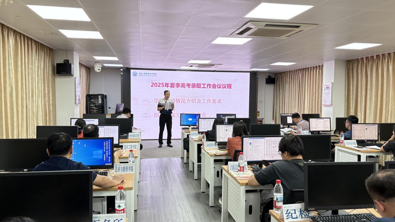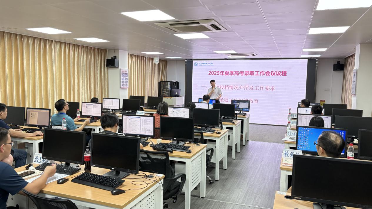 会上,徐勇军简要回顾了学校春季分类招生录取工作,全面介绍了夏季高考投档总体情况。他指出,2025年学校面向全国15个省(市)招生总计划8060人,春季高考已完成4919人录取任务。夏季高考计划招录3781人(其中广东省3407人,其他14个省市374人),在广东省招录中,各组投档总体情况持续保持稳定向好,位居全省同行前列。他强调,各相关职能部门、二级学院要认真贯彻落实国家有关招生工作规定,从维护教育公平、维护社会和谐稳定高度实施好平安高考、暖心高考、阳光高考,公平公正公开开展招生录取工作,强化专业数据对比分析并优化招生质量和提升学校办学水平。
