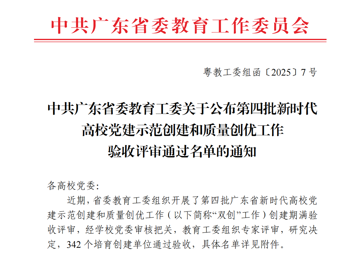 近日,中共广东省委教育工委公布第四批全省新时代高校党建示范创建和质量创优工作验收结果。在学校党委的精心培育和全程指导下,测绘遥感信息学院党总支凭借扎实的党建工作基础、创新的育人模式及显著的建设成效,顺利通过“党建工作标杆院系”培育创建单位验收,成为全省高校党建工作的示范标杆之一。