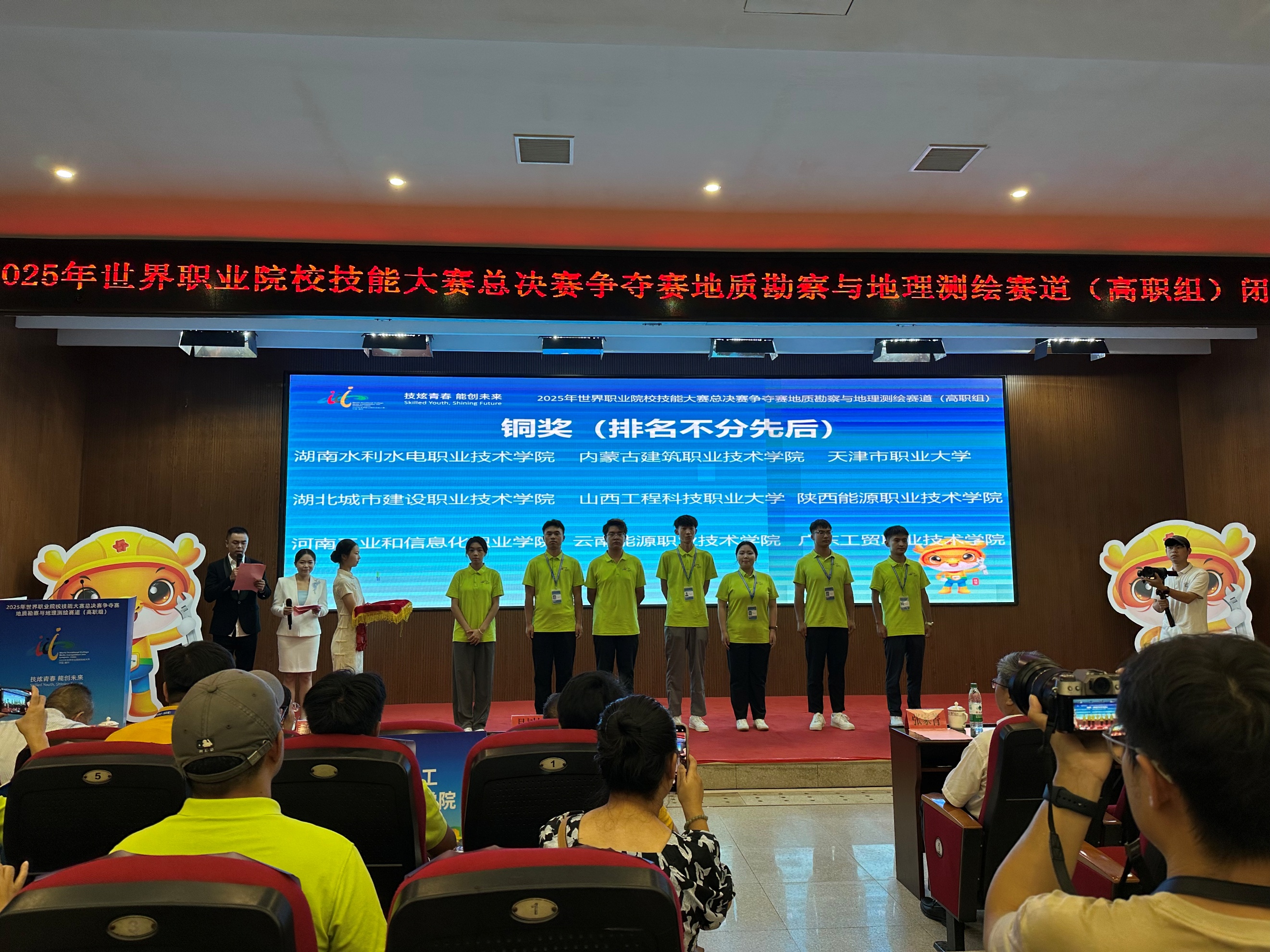 8月25—30日,2025年世界职业院校技能大赛总决赛争夺赛地质勘察与地理测绘赛道(高职组)在江西赣州举办。来自全国各地的105支参赛队伍进行角逐,测绘学子们在激烈竞争中脱颖而出,以总分排名第9、小组排名第3的优异成绩斩获铜奖,连续第二年在世界职业院校技能大赛中获奖!