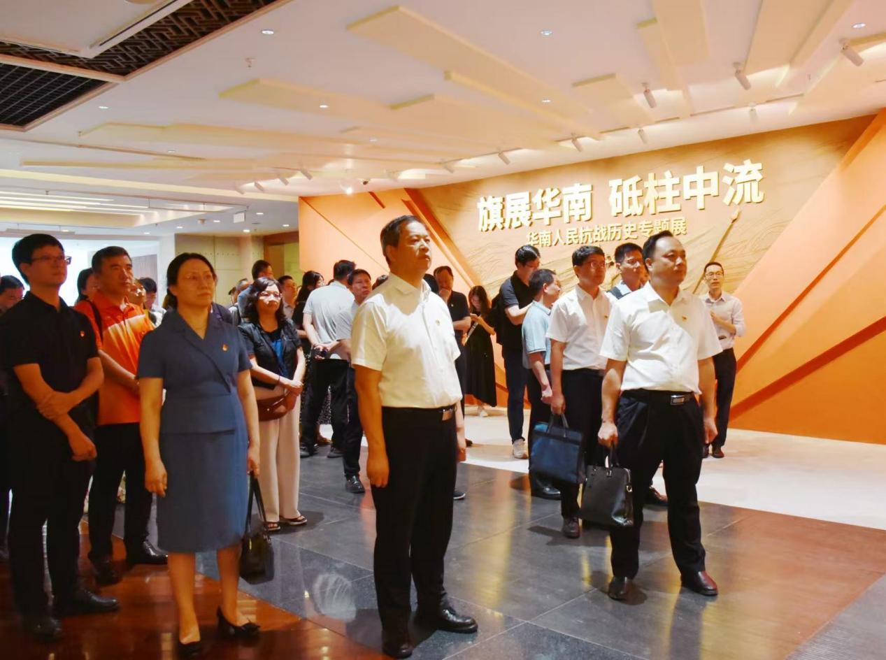 在档案馆工作人员的专业讲解下,中心组成员一行参观了“旗展华南 砥柱中流——华南人民抗战历史专题展”。展厅内,一份份泛黄的珍贵文献、一张张定格历史的老照片、一件件承载时代记忆的实物展品及丰富的音视频资料,系统展示了在中国共产党倡导建立的抗日民族统一战线旗帜下,华南人民众志成城、英勇抗敌的历史。场景装置丰富的沉浸式观展体验,让大家深刻感悟了华南人民在党的领导下浴血奋战、不屈不挠的伟大抗战精神。