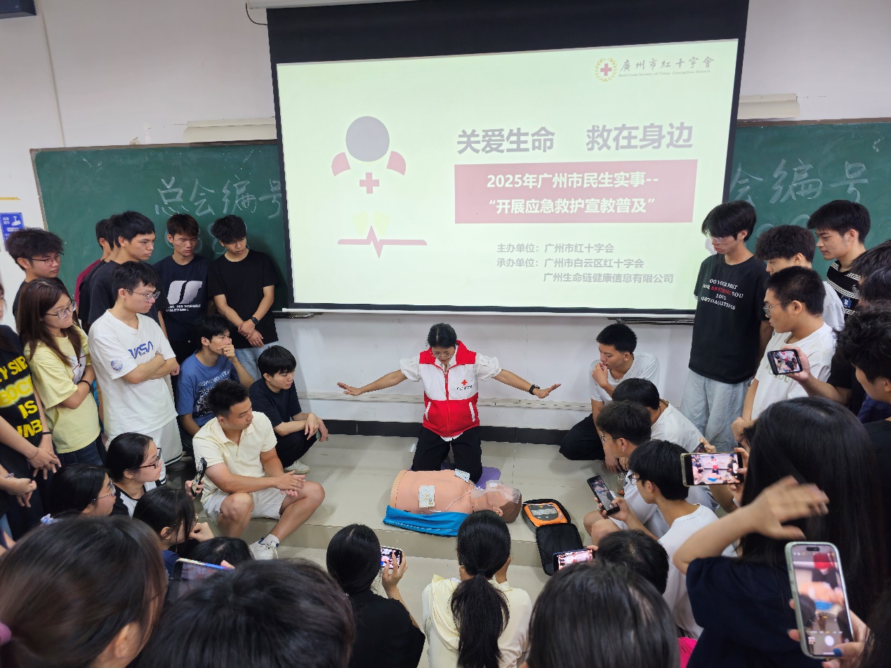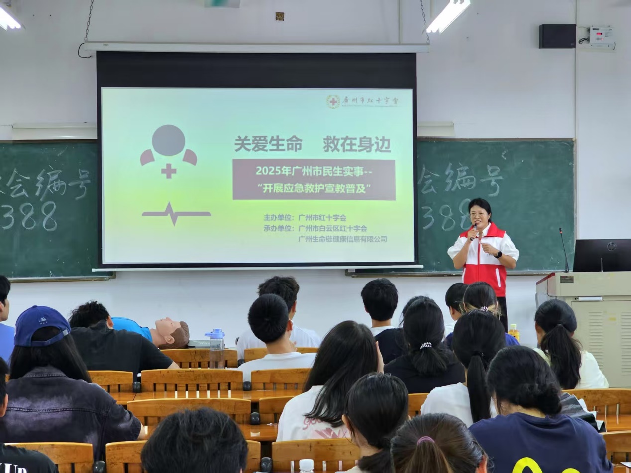 为提升学生的应急救护能力,筑牢生命安全防线。2025年9月27日下午,广州市红十字会在我校明德楼2-301室组织开展应急救护培训活动。本次培训围绕红十字知识、心肺复苏(CPR)、AED使用等核心内容,通过理论讲解与实操演示的形式,让学生们沉浸式掌握急救技能。