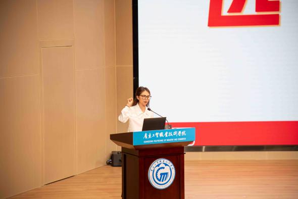 随后,承办单位应用外语学院院长彭枚芳受学校委托代表学校致辞,对大赛的筹备工作进行了介绍,并承诺全力保障赛事顺利进行,为选手营造公平、公正、专业的竞赛环境。
