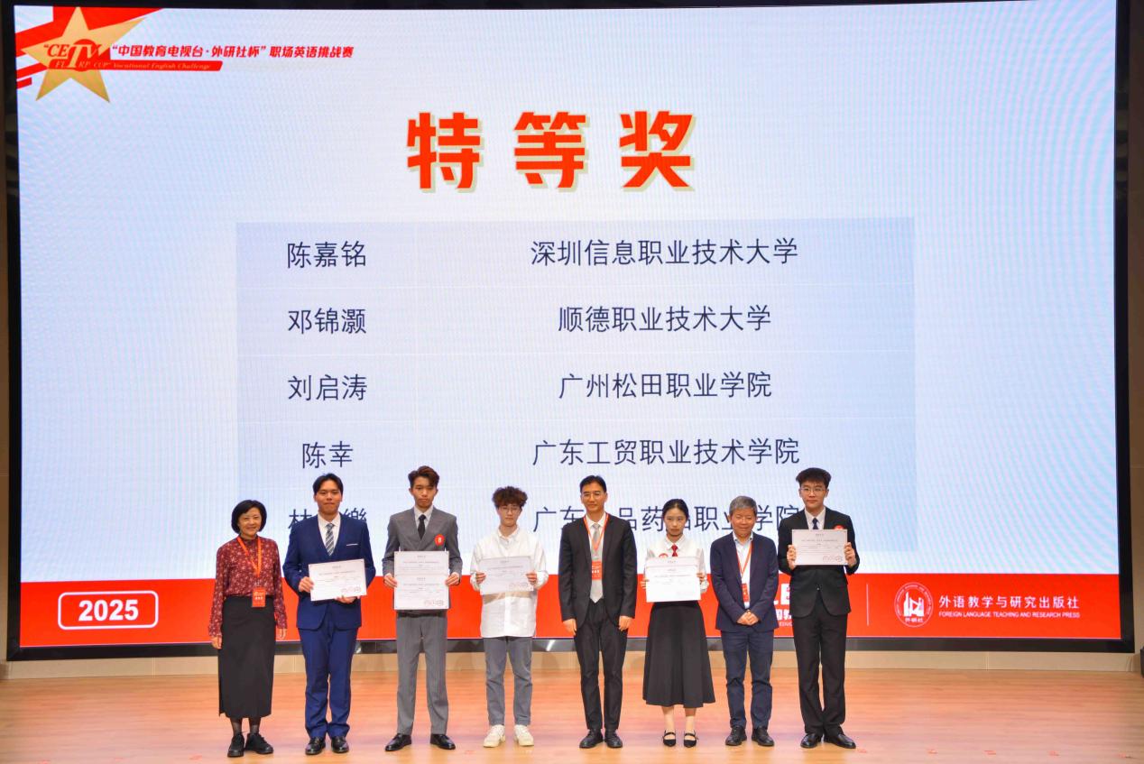 经过两天的激烈比拼,我校应用外语学院陈幸同学(指导老师:陈锦英)以扎实的语言功底、极具感染力的现场表达赢得评委高度认可,一举夺得特等奖。我校应用外语学院刘嘉文(指导老师:陈文敏)、郑梓凡(指导老师:雷莹)、邓韶萍(指导老师:廖淑梅)荣获三等奖,作为本次大赛的承办单位应用外语学院获评“优秀组织奖”。2025年“中国教育电视台·外研社杯”职场英语挑战演讲大赛网络赛已于9月份成功举办,我校郑善真(指导老师:胡红玲)、王晶(指导老师:廖锦凤)荣获特等奖。我校获特等奖的3位选手将代表广东省参加全国总决赛。