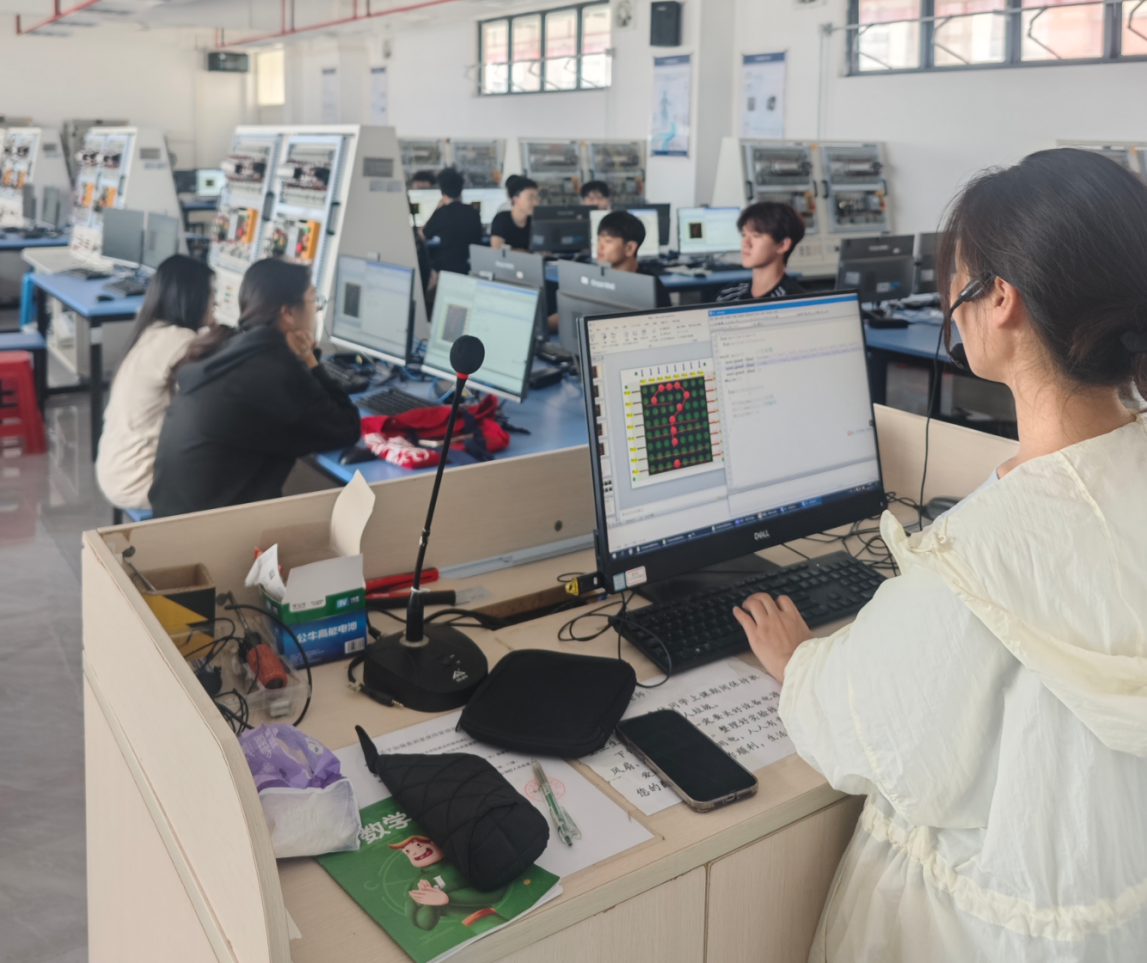 作为专业核心课,《发动机系统诊断与维修Ⅳ》聚焦单片机技术在发动机电子控制中的应用。课堂上,黄丽英老师以“精准诊断、规范维修”为主线,将单片机教学、故障诊断实操与思政教育相结合,讲解单片机控制模块的核心作用,通过典型故障案例剖析其数据采集、信号处理逻辑;实操环节指导学生解析单片机故障代码、调试控制程序,同时融入“精度关乎安全”的职业态度与团队协作意识培养,实现“技术+技能+素养”三重教学目标。