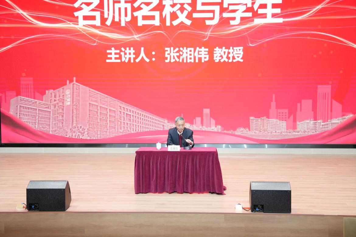在讲座中,张湘伟教授以《名师名校与学生》为主题,回忆起他参加重庆大学建校90周年的九秩薪传“师者说”微论坛的情景,并结合自身一生的执教经历和丰富的行政管理经验,分享了学术感悟和育人心得。他举例阐述了办学宗旨和理念对名校建设的重要性,深刻提出名校、名师与学生三者的关联性。他强调,在当今时代背景下,教育工作者保持深厚的学术定力和良好教育风范尤其需要,要始终坚守育人初心,沉心问道,将培养学生健全人格与综合素养置于首位;要大力弘扬优良学风,营造潜心向学、诚实守信氛围;要重点帮助学生学业攻关,帮助学生掌握学习方法和养成良好学习习惯,从而真正肩负起为国家培育栋梁之才的使命。