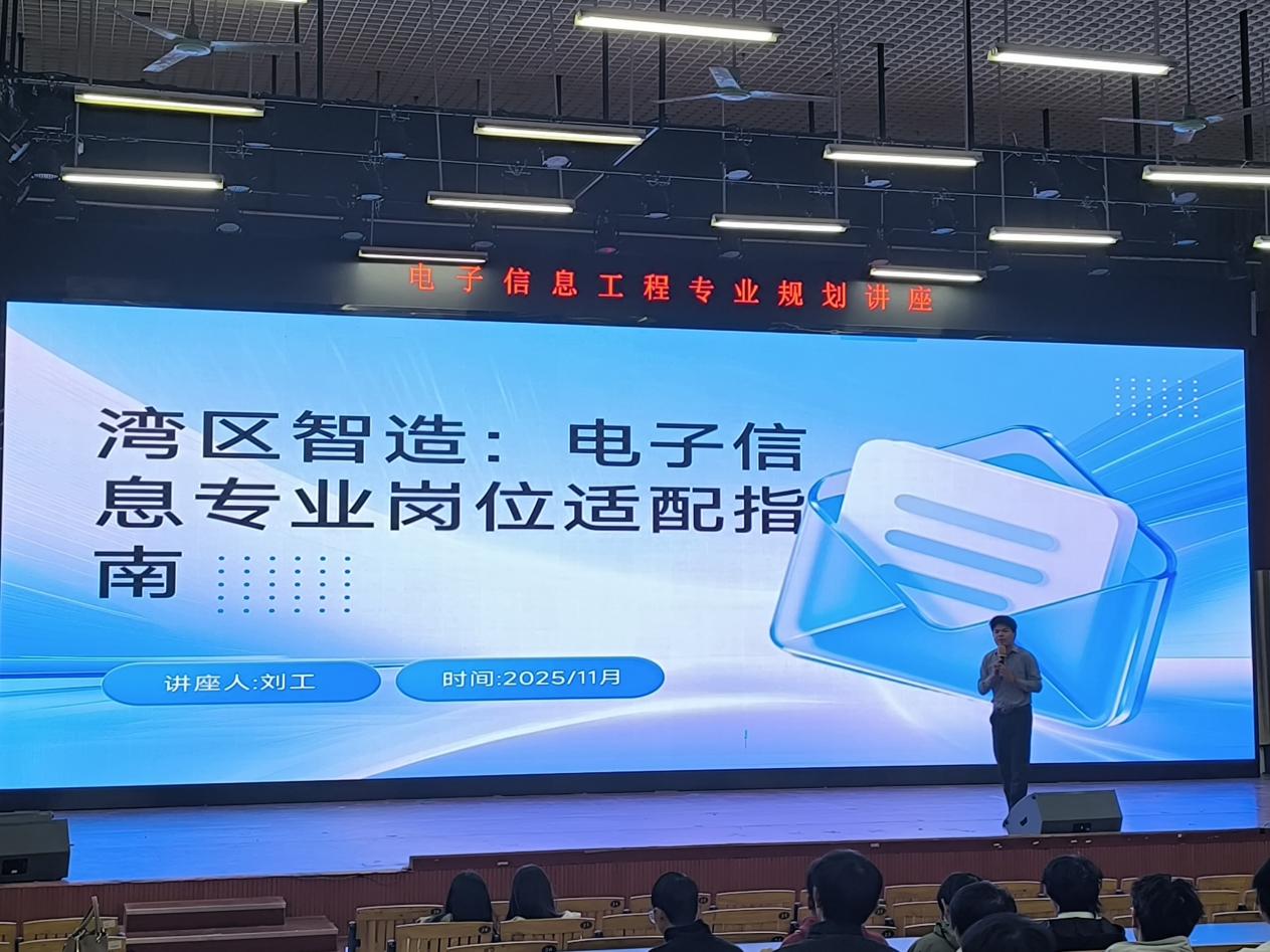 为了进一步推动产教融合向纵深发展,助力学生更清晰地规划个人职业发展路径。11月18日下午,汽车工程学院在明德楼2-105演艺厅开展了电子信息工程专业规划宣讲会。深圳信盈达科技有限公司刘经理、汽车工程学院教师解秋梦、辅导员吴俊迪以及25级电子信息工程专业全体学生参加宣讲会,此次会议由刘经理主持。