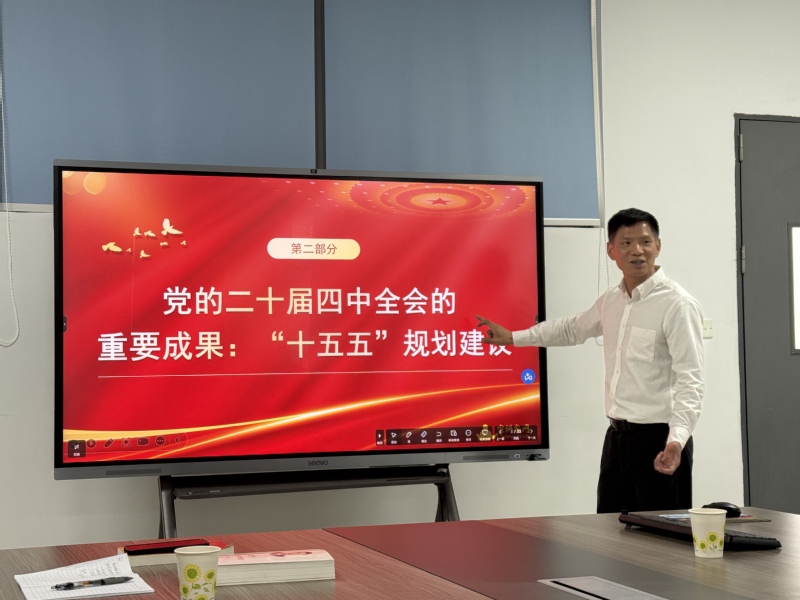 为深入学习贯彻党的二十届四中全会精神,切实把思想和行动统一到党中央决策部署上来,11月24日上午,应用外语学院在白云校区行知楼606教室举行党的二十届四中全会精神专题宣讲会。学院党总支书记罗春科以《把党的领导贯穿经济社会发展各方面全过程》为题作报告,学院党政班子成员、师生党支部书记、各系主任及全体辅导员参加会议。