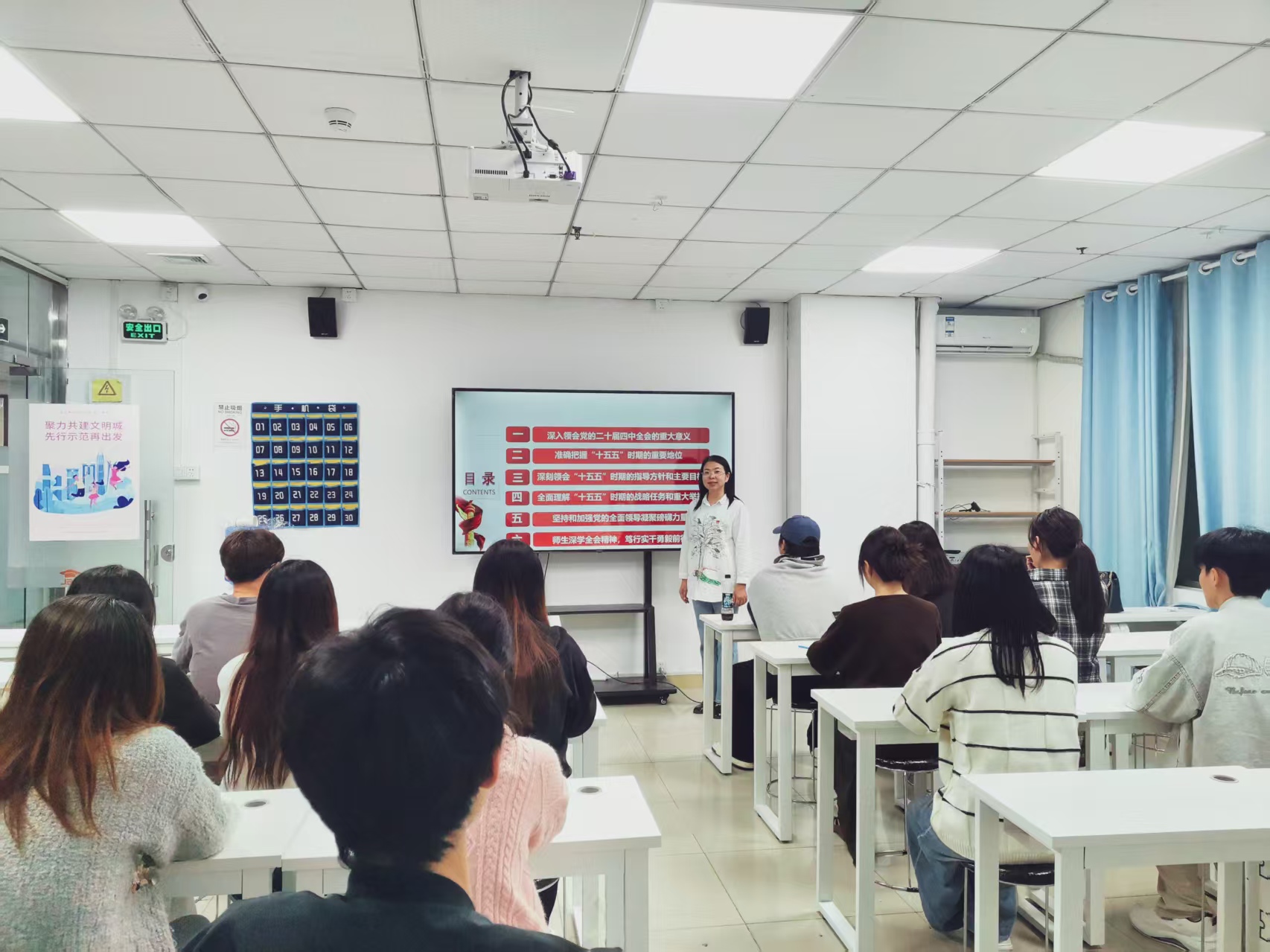 为深入学习贯彻党的二十届四中全会精神,推动全会精神在基层教学一线落地生根,12月2日,应用外语学院院长彭枚芳前往深圳校外教学点,为2024级商务英语专业(现代学徒制班)的全体师生讲授了一堂生动而深刻的专题党课。
