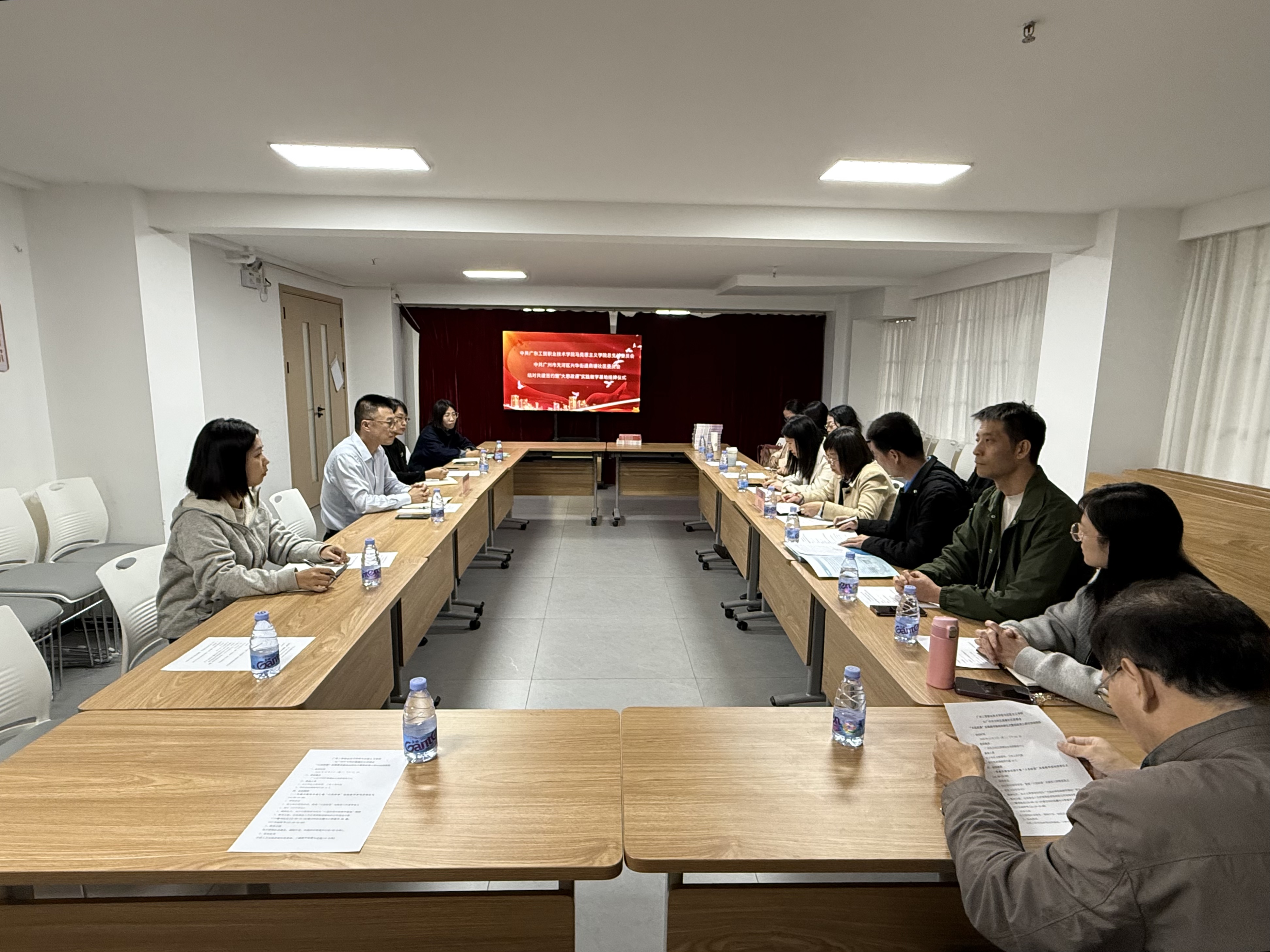 2025年12月2日下午,我校马克思主义学院与广州市天河区兴华街道燕塘社区在天河区燕塘社区党群服务中心举行党建共建暨“大思政课”实践教学基地授牌仪式。兴华街道党工委副书记涂智玮,燕塘社区党委书记、社区居委会主任房韵莉,燕塘社区专职工作人员廖富瑾、兴华街道社工站社工周秀茹,我校马克思主义学院党总支书记张巧平,院长刘凤梅,各教研室主任和教师代表参加了活动。