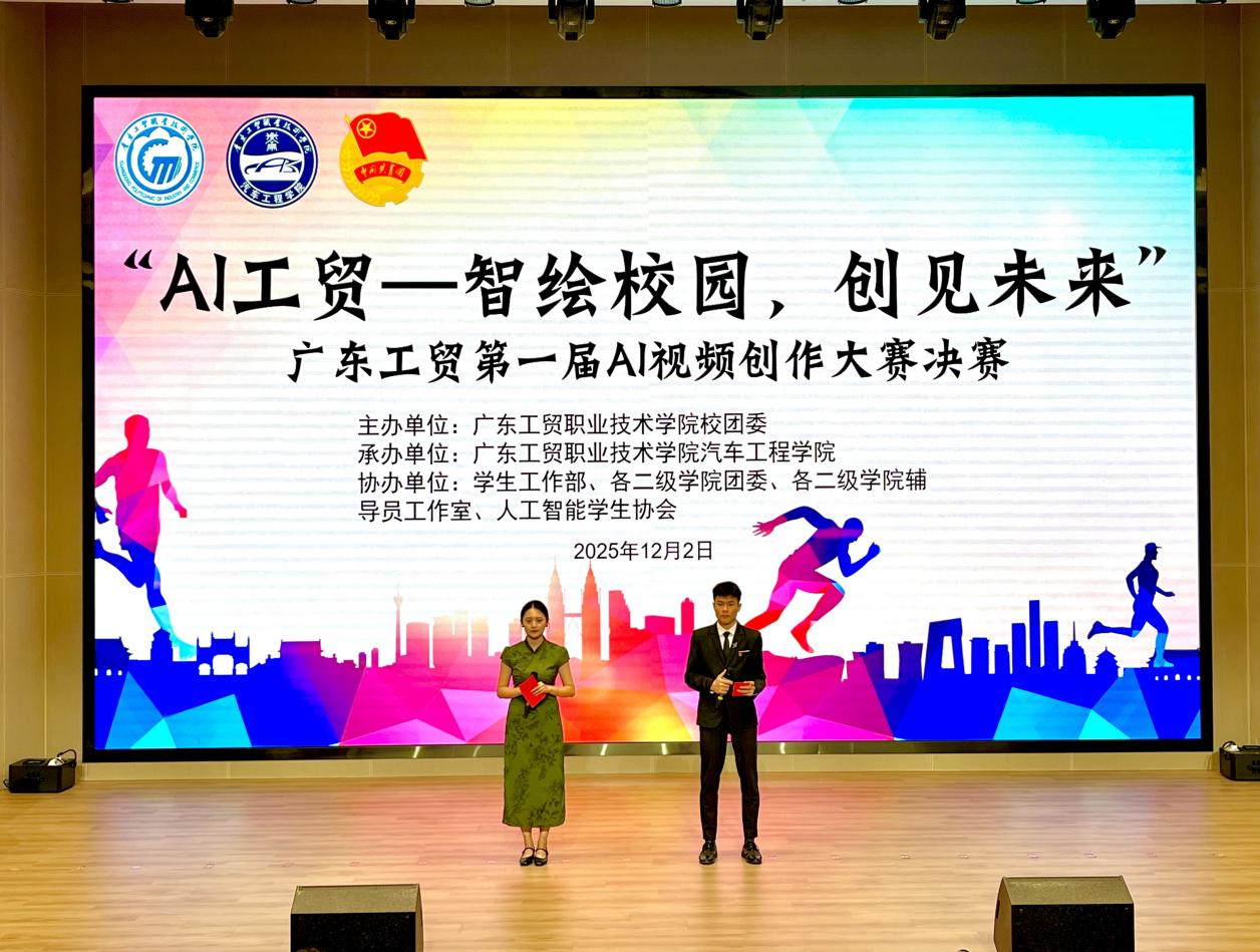为深入贯彻落实学校“人工智能+”三年(2025-2027)行动计划,推动人工智能技术在校园场景的创新应用与人才培养,提升学生人工智能素养与科技创新能力,12月2日下午,由100%精准出码规律资料网站校团委主办,汽车工程学院承办,学生工作部、各二级学院团委、各二级学院辅导员工作室及人工智能学生协会协办的广东工贸第一届AI视频创作大赛决赛在白云校区学术报告厅举行。学校党委书记何汉武教授、教务部部长何军拥教授、组宣部副部长陈露、人力资源部副部长孔令叶、计算机学院系主任张坡博士,以及汽车学院党总支书记朱永平、副书记欧敏、副院长王锋、潘梦鹞教授作为颁奖嘉宾或专家评委出席了本次决赛。本次决赛由汽车工程学院郑睿卿和工商管理学院刘圳主持,决赛取得圆满成功!