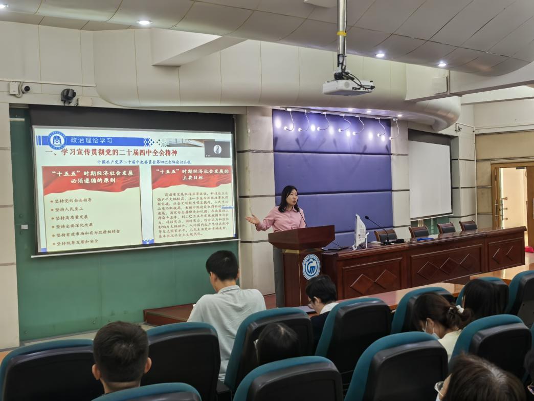 为深入学习贯彻党的二十届四中全会精神,11月18日下午,工商管理学院党总支书记周清莲以“学思践悟全会精神,党建业务融合赋能”为主题,面向全体教职工开展党的二十届四中全会精神宣讲,推动全会精神在基层落地生根。