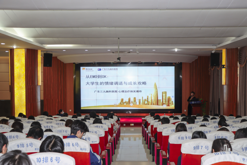 为深入贯彻落实党的二十届四中全会关于健全社会心理服务体系、加强青少年心理健康教育的部署要求,提升师生心理健康素养与情绪管理能力,12月4日下午,艺术与教育学院二级心理辅导站联合荔湾区石围塘街道社区卫生服务中心、学校心理咨询中心,在荔湾校区笃学楼报告厅举办“从EMO到OK:情绪自救与成长攻略”主题心理讲座。活动特邀广东三九脑科医院吴博玲医生主讲,吸引荔湾校区约180名学生参与,现场互动热烈。