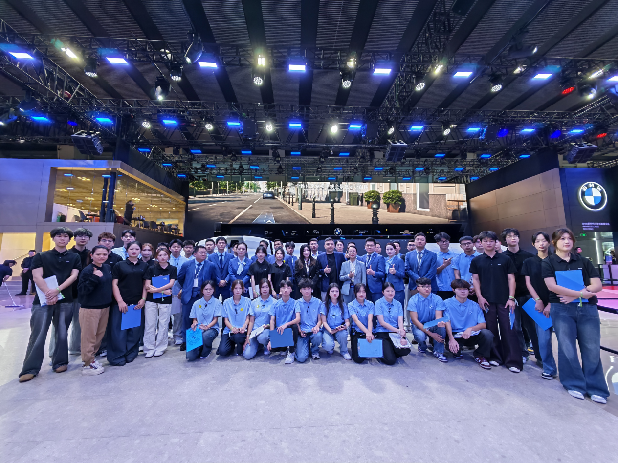 在国际车展这一全球汽车行业技术展示与交流的核心平台上,汽院学子们跳出课本,投身实战。他们穿梭于各智能展台之间,化身汽车科技的“体验翻译官”和展馆“小助手”,热情地为观众讲解智能驾驶系统、新能源汽车技术等前沿亮点,将所学理论知识与真实的产业生态深度融合。同学们在实践中褪去青涩,以饱满的热情和专业的态度,为展会注入了青春活力,也展现了良好的职业素养与团队协作精神。
