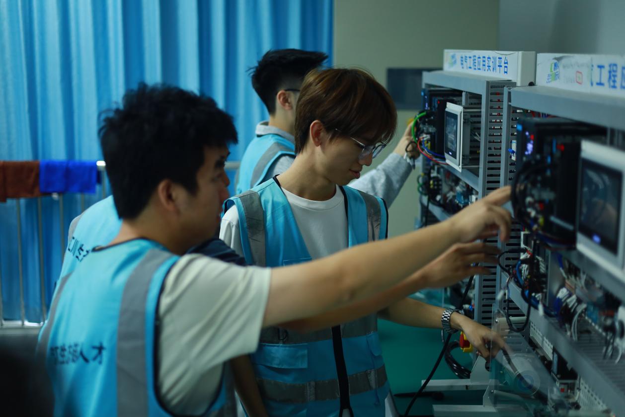 课程设计围绕电工基础、控制技术、工业机器人应用、职业素养塑造等四大实战模块层层递进。为在有限时间内实现从学生到“准工程师”的转变,学员们经历了高强度的沉浸式学习。每日训练从早上8点至晚上10点,形成“白天讲授实操、晚间总结复盘”的节奏,仿佛提前进入了企业项目攻坚状态。每一个模块结束,均设有对应的理论与实操考核,确保技能扎实掌握、步步为营。这种与企业作息接轨、学考并行的安排,不仅强化了技能,更锤炼了学生的职业韧性与适应能力。