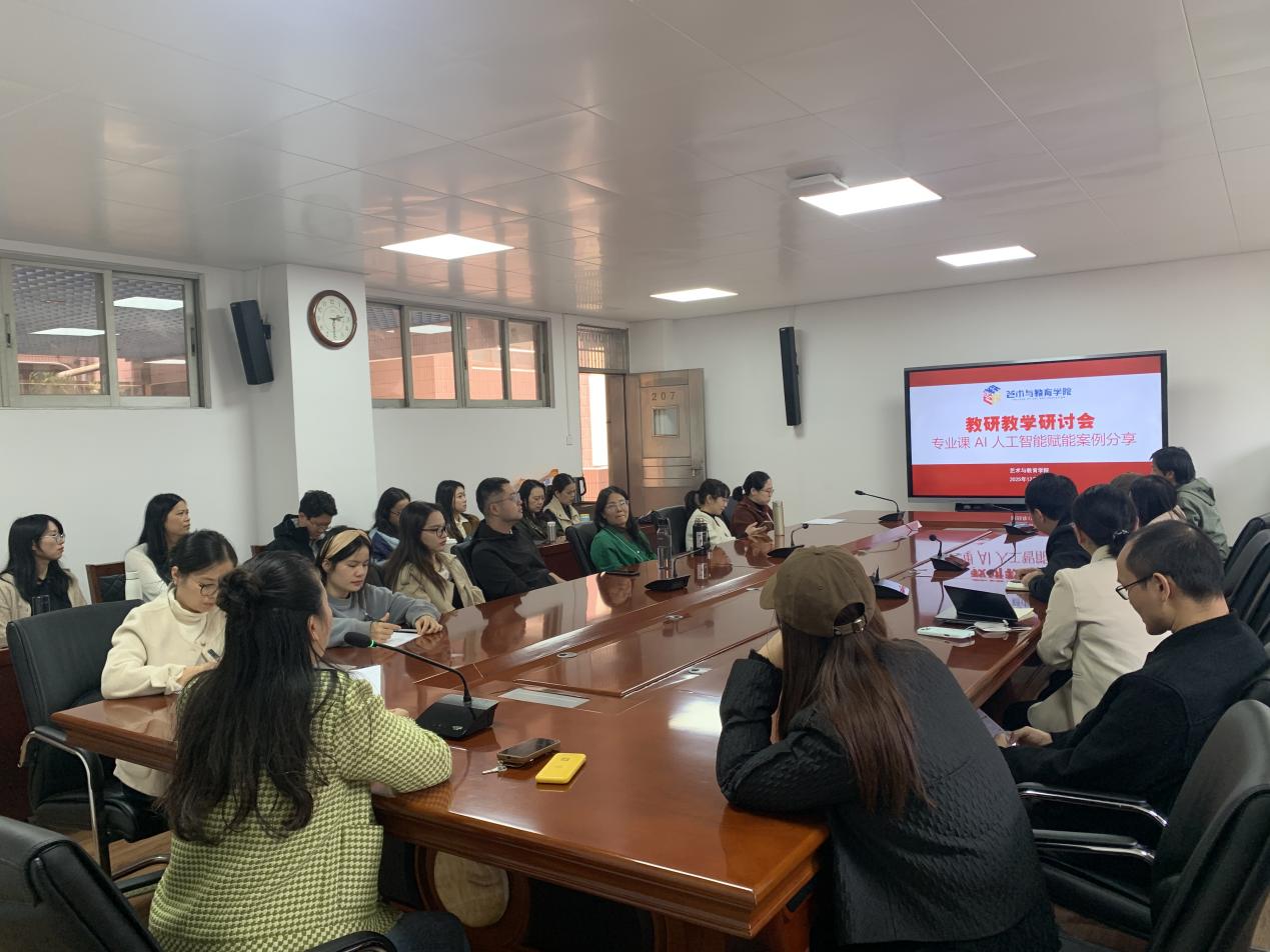 为主动适配人工智能技术对艺术设计教育领域的深刻变革,破解专业招生与教学转型双重挑战,12月16日,艺术与教育学院艺术设计教学系举办《专业课AI人工智能赋能案例分享》专题研讨会。郑秀惠、陈正平、王丽丽、吴志忠等核心骨干教师分享AI技术课程落地经验,全体参会人员围绕AI应用痛点、招生破局之策展开深度研讨,为学院在智能时代抢占艺术设计教育制高点、应对行业变革机遇与挑战,擘画了兼具前瞻性与实操性的发展新蓝图。