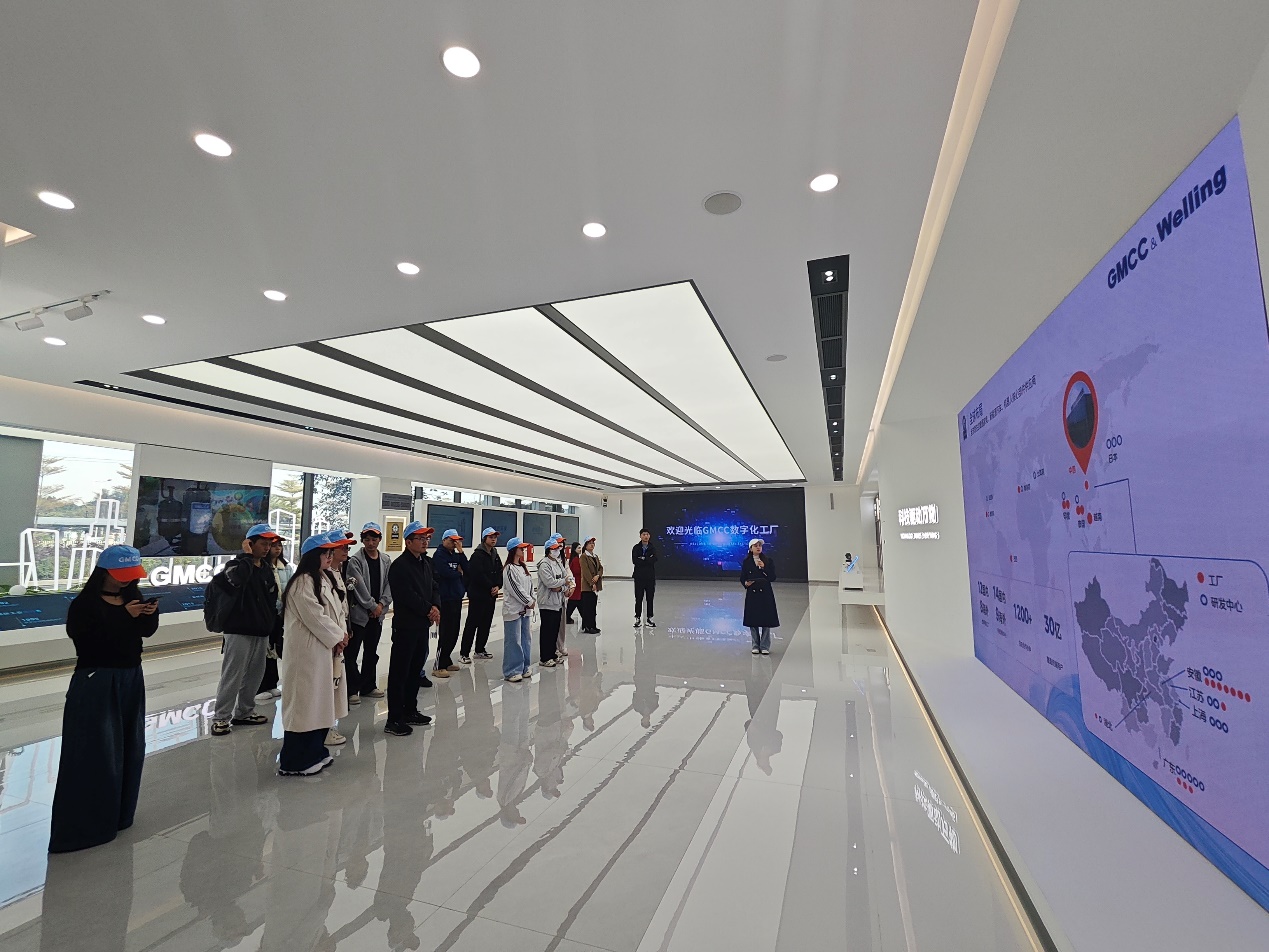 随后,在企业人员引导下,师生一行深入参观GMCC数字化工厂,实地了解智能制造生产线、先进工艺流程与企业数字化管理体系。同学们还参观了员工宿舍、食堂等生活设施,全面感知企业环境与文化。通过近距离接触生产实景与技术应用,学生们对专业理论与实践结合的认知进一步深化,对未来职业发展有了更清晰的规划。