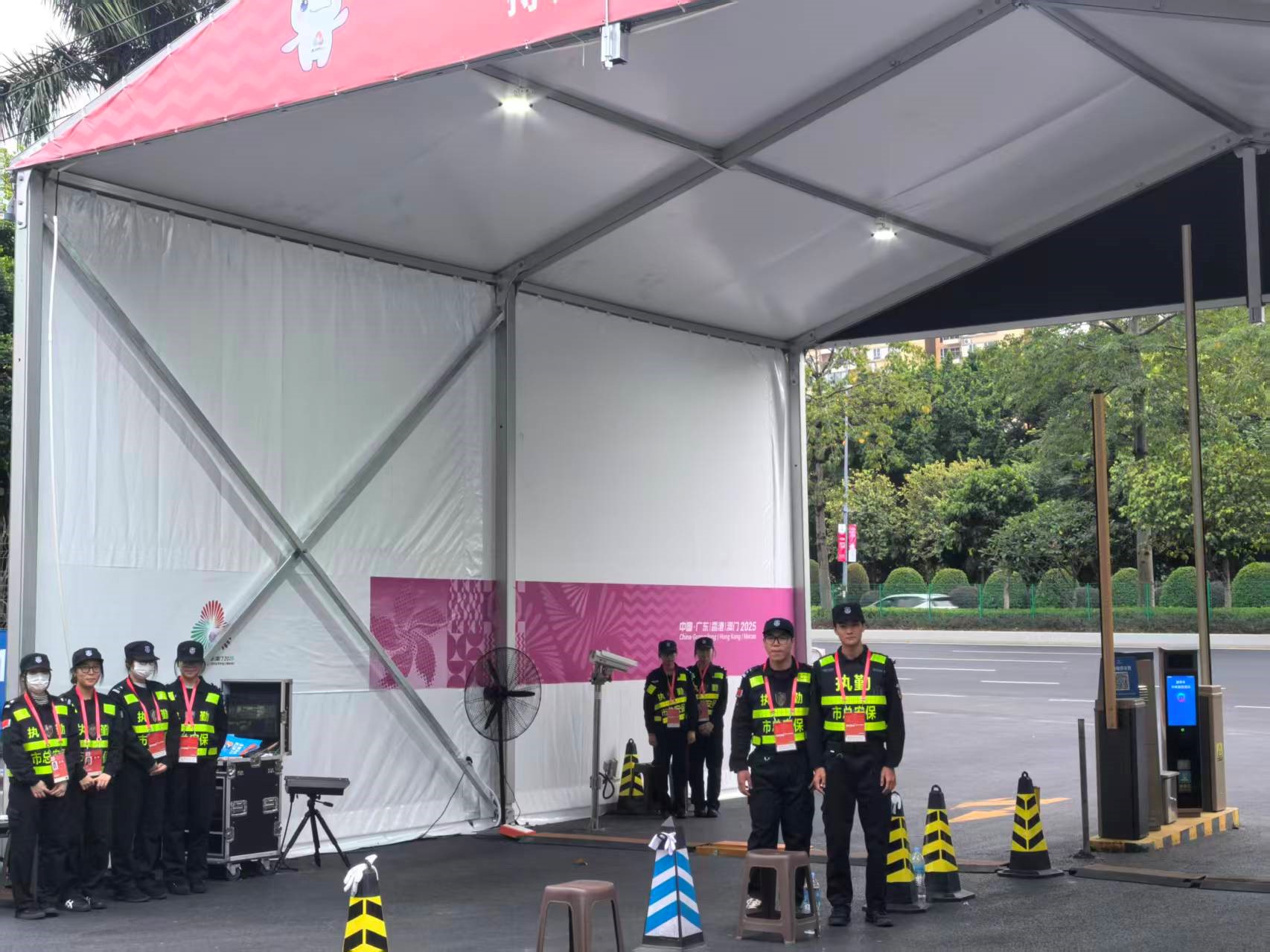 按照组委会赛事安排,11月1日起同学们先后赴花都区、增城区、白云区共5个服务场所(场馆),按照“三班倒”的形式参加安保技术服务。根据现场带队队长的分工,同学们听从指挥,各就各位。从第一次上岗的手忙脚乱,到逐渐熟练流程,再到规范操作,同学们认真接受“批评”,全力克服自身困难,快速提升安保技术水平。“车检”岗位:前面引导车辆,示意停车检查;上前问好,“请配合安检,请打开引擎盖和车尾箱”;上车检查……同学们有序配合,逐一操作,得到现场民警的夸奖。“人检”岗位:上前问好,“请张开双臂”;手持电子扫描仪,从身体前部到后部,从头到脚,不放过任何一处。而在白云区场馆,同学们一边按要求进行安检,一边暖心问候残疾人运动员,为身残志坚的运动员感动不已。