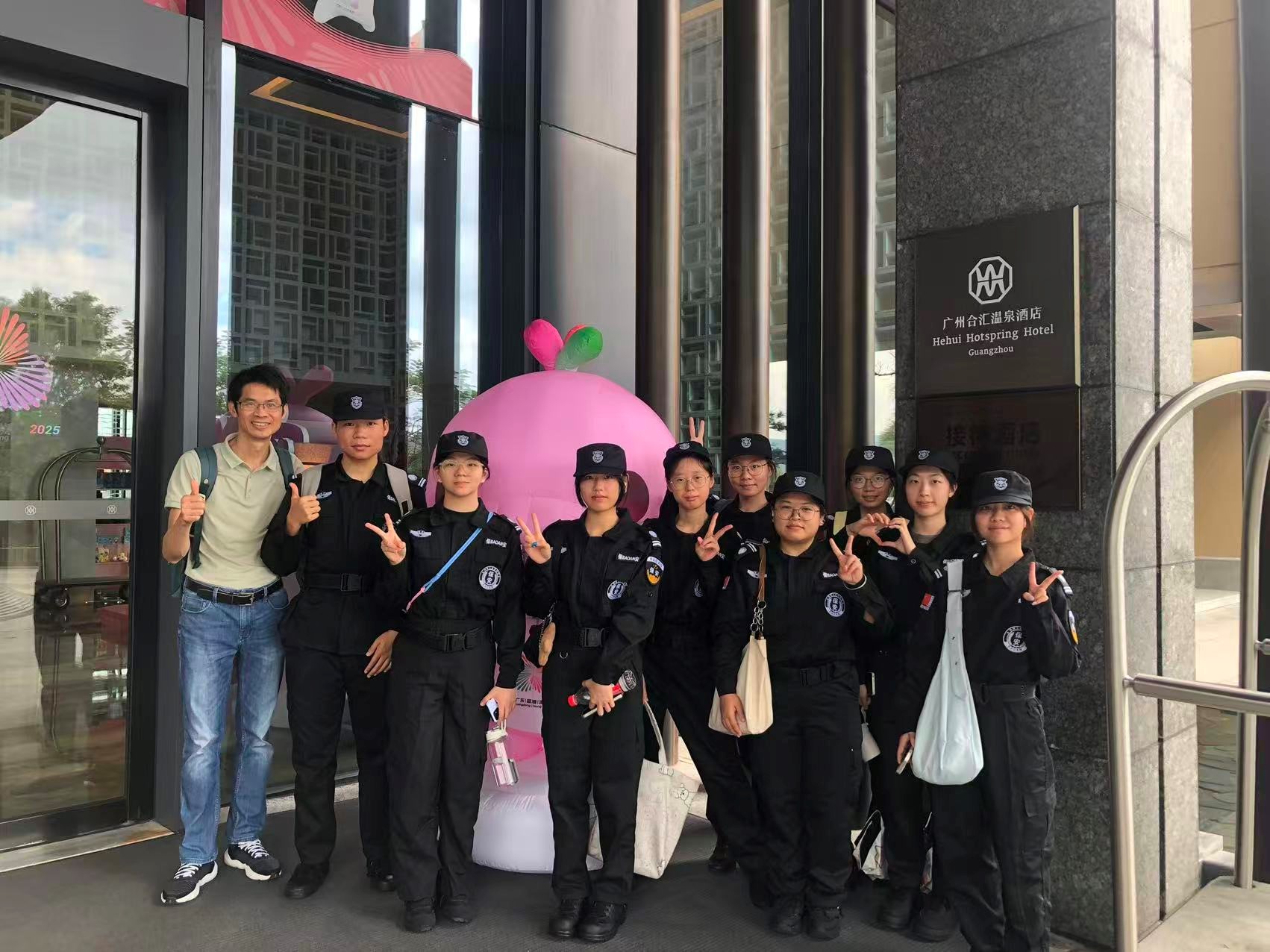 岗位工作熟悉之后,最具考验的是“坚持”。早班,每天5:30前起床洗涮,6点准时出发;中班,煎熬的是运动员及工作人员、技术官员往往成批到达场所(场馆),安保工作量大、任务重,回到学校已是凌晨;晚班,最困难的莫过于作息颠倒。而到换班时段,中班、晚班的同学休息时间前后不到5个小时。11月19日,广州骤然降温,“车检”岗位的同学轮流穿着安保公司配发的保暖大衣,互相打气,坚守岗位。现场值守的市总保带队干警动情地跟指导老师竖起了大拇指,“天气这么冷,你们学生很不错!”