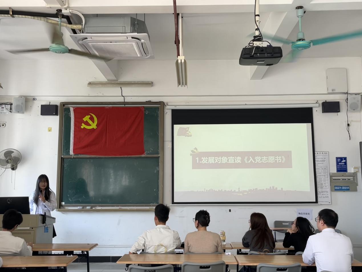 随后,发展对象们依次上台,由吴泽敏等7名发展对象从思想觉悟、理论学习情况以及综合实践情况等方面对自身情况进行汇报。