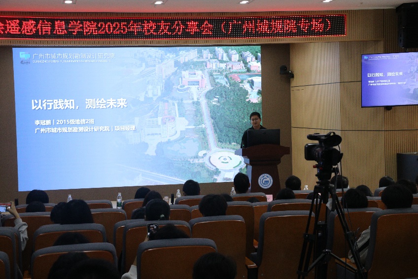 2015级地信专业校友李冠鹏,现任广州市城规院白云分院项目经理。在校期间担任班级组织委员和青协干事,曾在学院技能竞赛月获个人第一、广东省高职组技能竞赛二等奖等荣誉。步入职场后,深耕基础测绘、无人机测绘等领域,三次获评单位先进个人,并在2024年省测绘地理信息行业技能竞赛中荣获个人二等奖。他以“以行践知,测绘未来”为主题,技能竞赛与职场竞争力为切入点,为大家分享从校园到职场的思维转变,提醒同学们要从“学习者”转变为“创造者”,做到“眼里有活、手中有笔、心中有规划”。