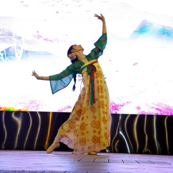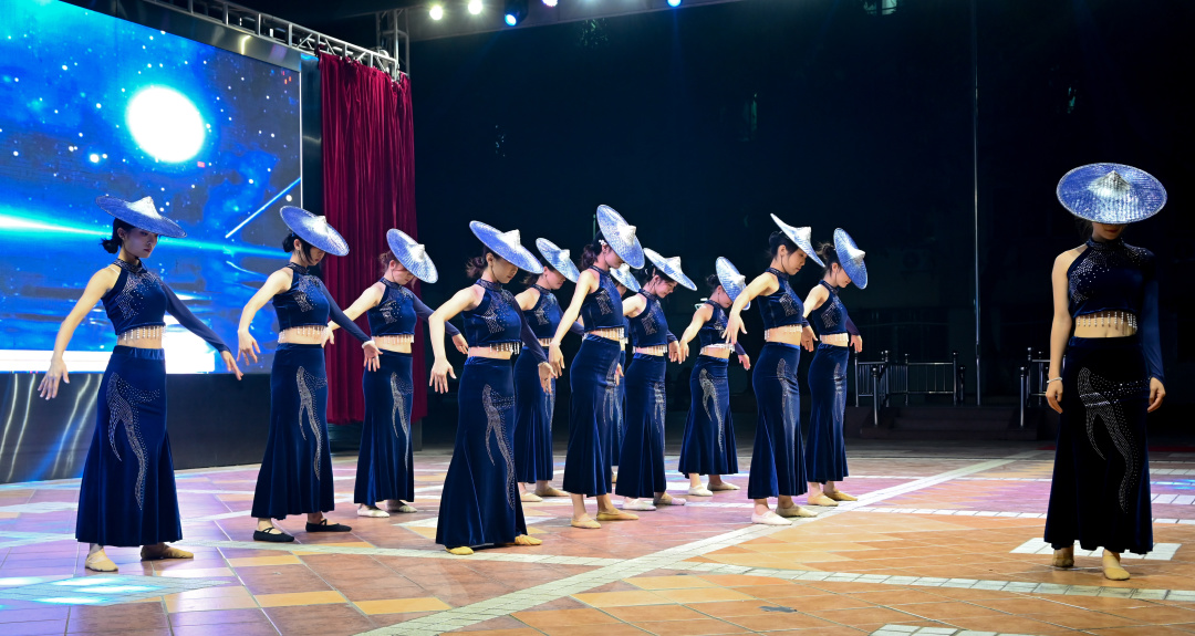 街舞队的《Kpop Remix》节奏鲜明,展现多元文化碰撞;24学前班学子的舞蹈《陶醉了》,以优美舞姿传递纯粹情感;谢思芹老师的独唱《月半小夜曲》,经典旋律婉转悠扬,彰显教师多才多艺;24学前班的合唱《童年狂想曲》,唤起师生童年记忆,温馨动人。25学前5班的《爱你没差》唱出青春坚定,沁恒动漫社的《关于我COS角色走秀这件事》打破次元壁;教师朗诵《艺教之光,逐梦新程》,道出“躬耕教坛,强国有我”的初心;最后,25学前1班的《民族大团结》,以多彩服饰与整齐舞步,展现各民族交融共生之美,为表演环节收官。