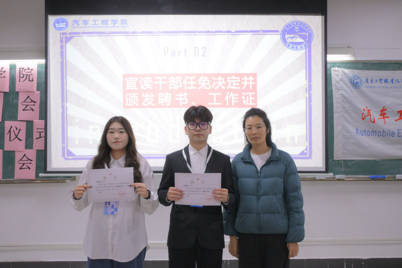 接着,汽车工程学院团委书记桂晶晶为大会致辞。她强调,授牌意味着使命的传承,更代表着沉甸甸的责任。学生会作为连接学院与学生的重要桥梁,要始终坚守服务初心,严格自我要求,在组织活动、落实工作时做到严谨务实、高效协作,以“服务同学、助力学院”为核心,在实践中锤炼能力、在担当里成长进步,同时,希望成员们能以榜样之姿引领身边同学,让学生会成为学院发展中不可或缺的青春力量。