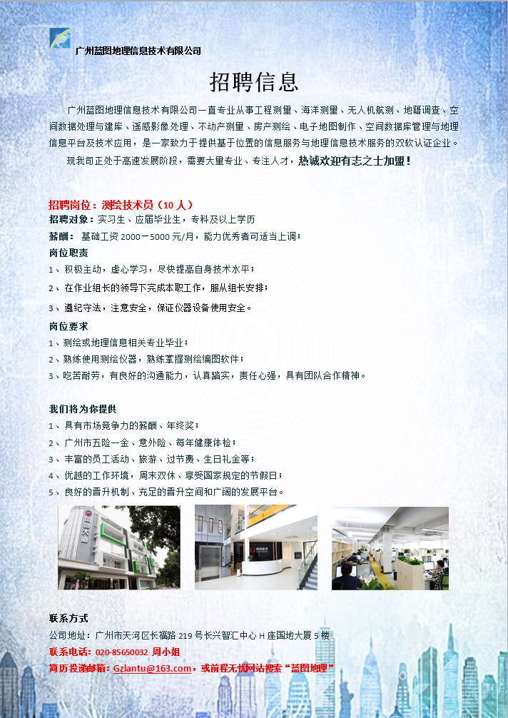 简历投递邮箱:[email protected],或前程无忧网站搜索“蓝图地理”