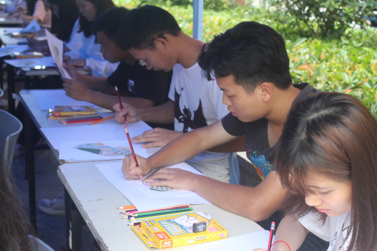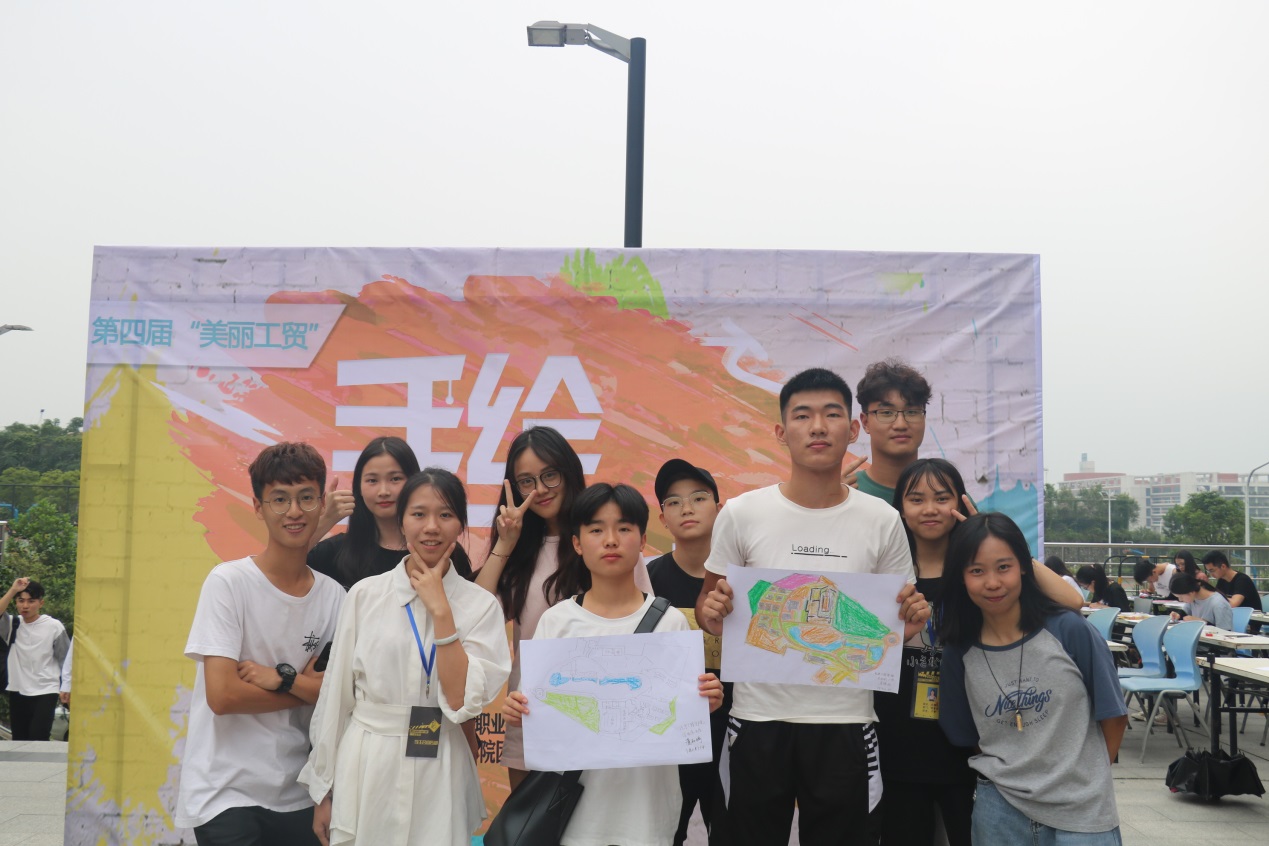 现场作画环节在白云校区子矜广场举行,主持人宣读规则和发放图纸后,同学们以白云校区平面地图为基础,依据心目中的校园的形象对校园地图进行涂鸦美化。手绘地图的比赛的时间虽然不长,可是却得到了同学们的积极参与,各参赛选手都热情的描绘着专属于自己的地图,铅笔在画纸上飞快的划动,为了让作品能够更加突出,在绘制和用色上更是反复琢磨,不断调整,既要让整幅画颜色相互对应,又要符合本次比赛的创新的主题。各位参赛选手的作品风格各异,既有简约风,也有魔幻风,既有唯美派,也有抽象派。