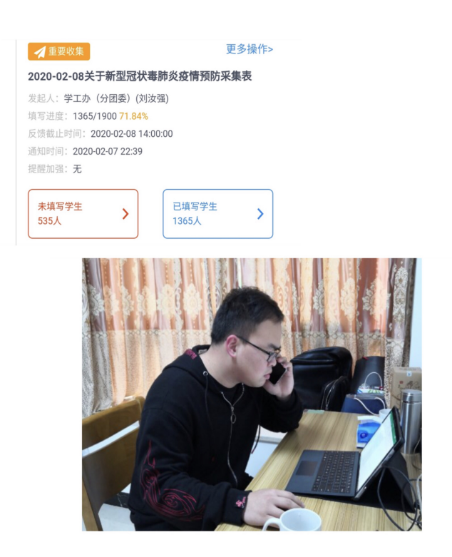 学院党总支统筹 “辅导员——班主任——学生家长/学生”三点,密切关注学生动态,通过“今日校园”APP采集学生的定位、疫情信息等。同时,学工办、班主任积极对接“三类”学生,深度了解“三类”学生情况,免除“三类”学生后顾之忧。