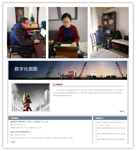 《数字化测图》课程团队郑艳老师承担了大量录制教学视频的工作,远在湖北老家的侯林锋老师克服网络不畅,家庭办公条件不足等困难配合完成课程建设任务。该团队在学校优慕课平台和智慧职教云平台同时建课,保障学生通过网络能够全方面学习知识。