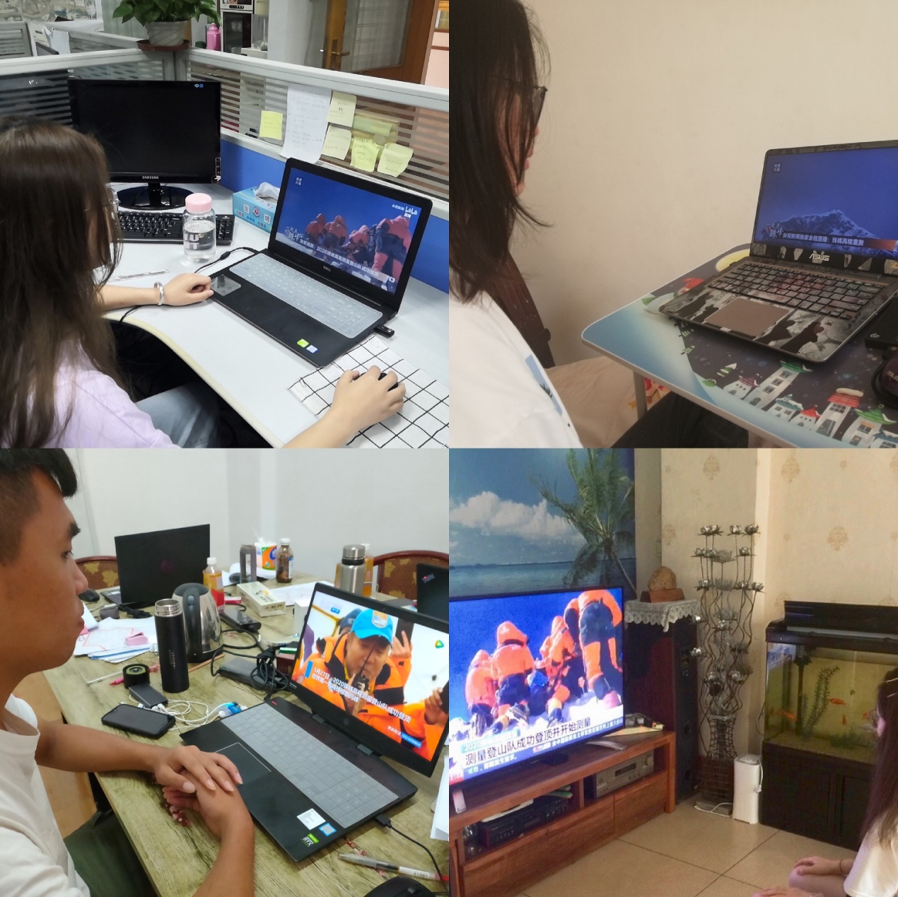 52711时,2020珠峰高程测量登山队登上世界之巅,全民沸腾。测绘遥感信息学院学生第一党支部组织全体党员观看了直播以及相关视频,支部党员现分布各地,有些在家学习,有些已在工作岗位上实习,支部通过微信平台采用“移动微课堂”的形式开展了本次学习与讨论。
