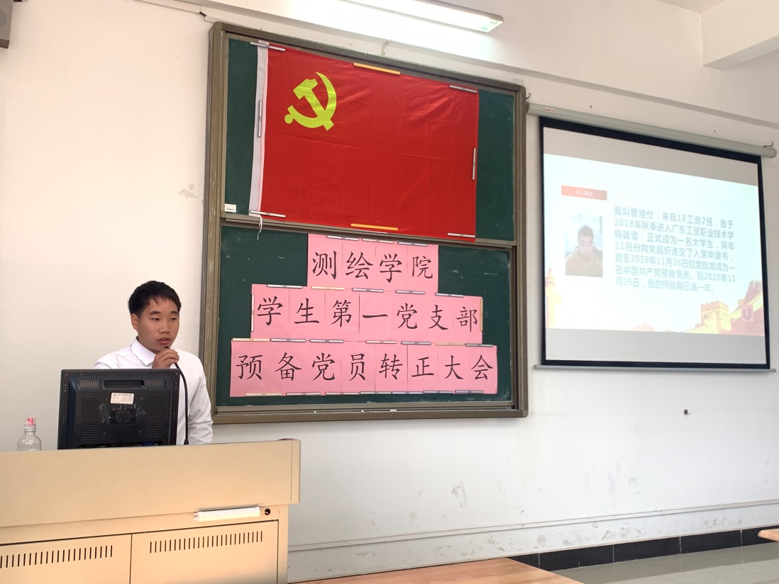 20201127日下午13:00,测绘遥感信息学院学生第一党支部在明德楼1-412召开预备党员转正会议,讨论了8名预备党员转正问题,会议由支部书记张玉荷同志主持,支部委员陈君浩、吴笛同志参加了会议。