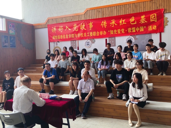 年逾八旬的李处长依然精神矍铄、神采奕奕,他结合个人经历讲述了自己对党的执着追求与热爱,道出了入党初心和对党的深厚情感。他告诉同学们自己出生在旧社会,成长在新中国,目睹了中国共产党带领中国人民解放和发展社会生产力、维护社会公平正义、推动当代中国发展的每一步。一个多小时的讲述抒发了老同志的爱党为党兴党情怀,深深感染了在场师生。