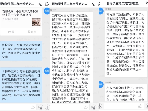 6月2日晚,测绘学院学生第二党支部开展“党史微课”系列活动,组织全体党员通过学习强国平台云端学习观看了百集微纪录片《百炼成钢:中国共产党的100年》第十六集:浴血坚持,并进行了交流讨论。本次党课由支部书记冯臻佳老师主持、主讲。