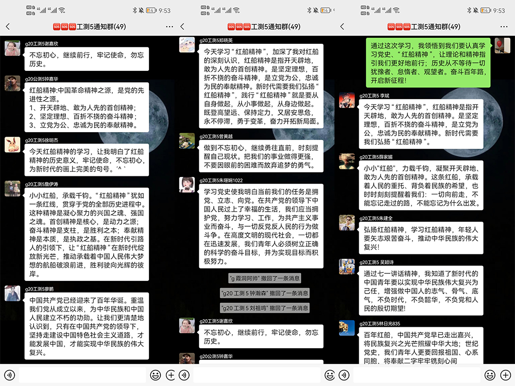 在本次宣讲结束后,2020级工程测量技术4班、5班分别在本班微信群组织开展了讨论,同学们积极的分享了自己的学习心得。