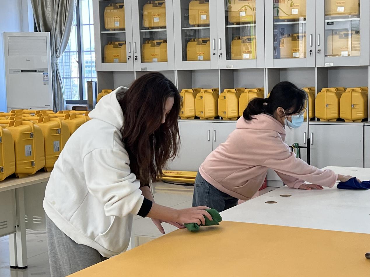全体发展对象来到仪器室之后,进行了明确的分工合作,不同组别的学员分别到不同的实训室进行清洁打扫。学员们认真细致地清扫教室的角落,整理桌面,对仪器室里的工具进行清洁,用心做好每一个细节,为同学们提供了一个更舒适的学习环境,充分展现了我院党课培训学员良好的精神面貌,进一步发挥先锋模范作用。