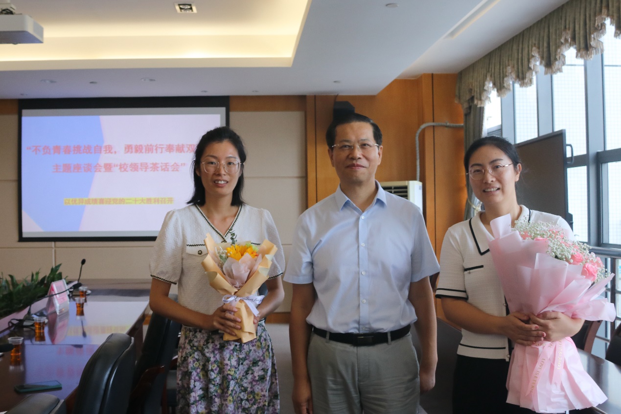 “不负青春挑战自我,勇毅前行奉献双高”主题座谈会暨“校领导茶话会”现场