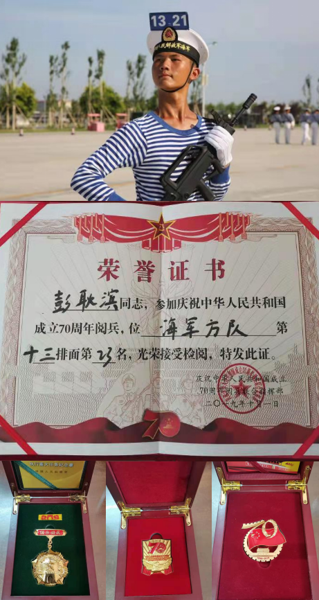 退伍复学后,彭耿滨用行动践行“退伍不褪色、退役不退志”的承诺,将中华人民共和国成立70周年阅兵中的奋力拼搏、初心和使命贯穿于学习和生活中,多次参与爱国主义教育活动、校园文化活动、“红色教育”活动等志愿公益活动,并参加学校退伍军人“红色初心”宣讲团、医疗服务队、军事爱好者协会、青协测绘学院分会、校学生社区委员会,获校级优秀青年志愿者荣誉,获省教育厅2021年“立志、修身、博学、报国”活动一等奖,相关事迹获广东电视台报道。今年,通过自身努力,他成功圆梦本科院校继续深造。