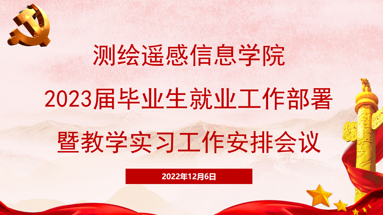 为贯彻落实学校关于2023届毕业生就业工作要求,推进学院开展高质量教学实习工作,12月6日,测绘遥感信息学院采用线上线下相结合的方式召开2023届毕业生就业工作部署暨教学实习工作安排会议,学院党总支书记、院长速云中、副书记李元、副院长高照忠、全体教职工以及毕业生代表参加会议,会议由速云中主持。