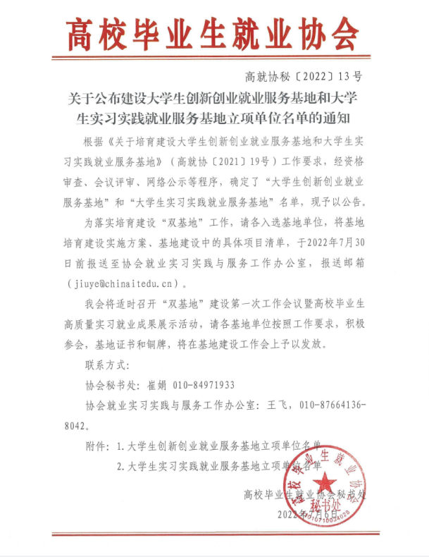 党的二十大明确指出,要实施就业优先战略,强化就业优先政策。强调了就业在国家发展全局中的战略性地位和在宏观经济决策中的优先位次。2022年7月,学校成功申报并获批首批“全国大学生创新创业就业服务基地”培育建设单位立项。本次共有124家高校、42家企业入选全国大学生就业服务“双基地”培育建设单位。