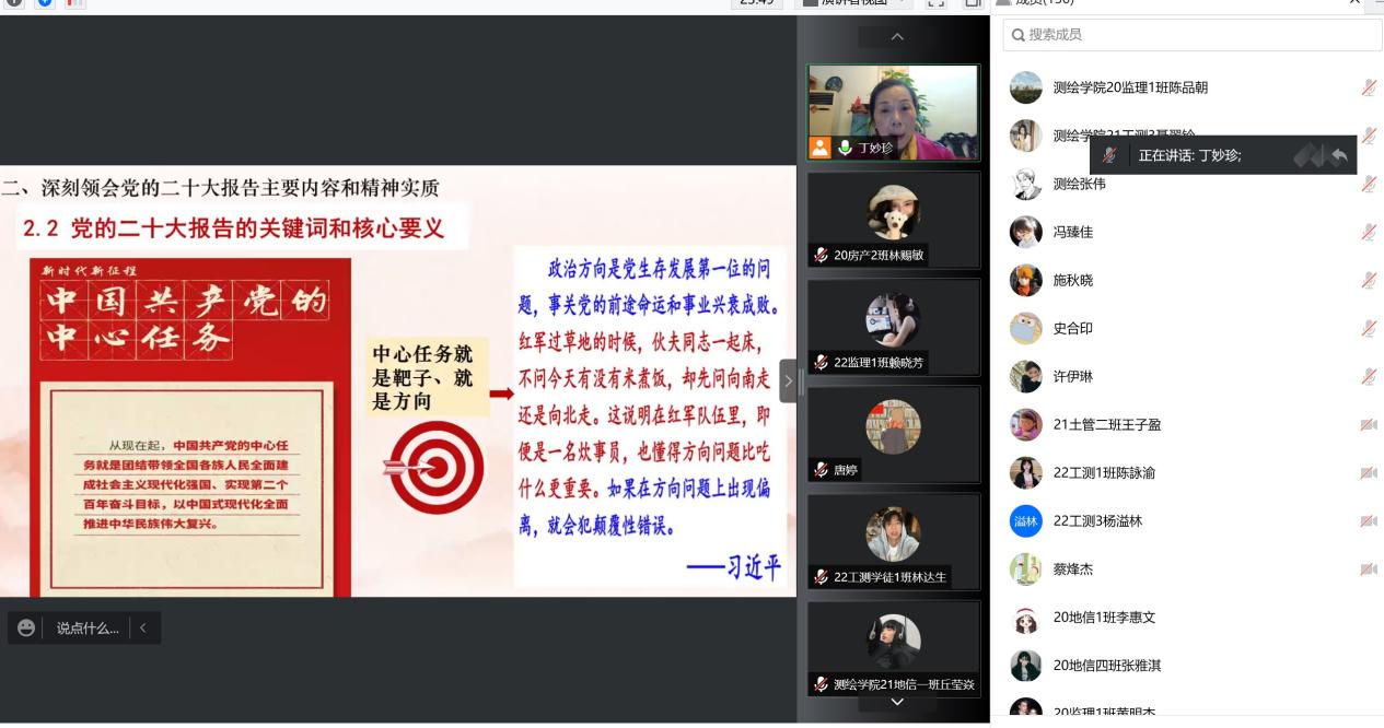 退休教师丁妙珍教授为测绘学院师生宣讲党的二十大精神