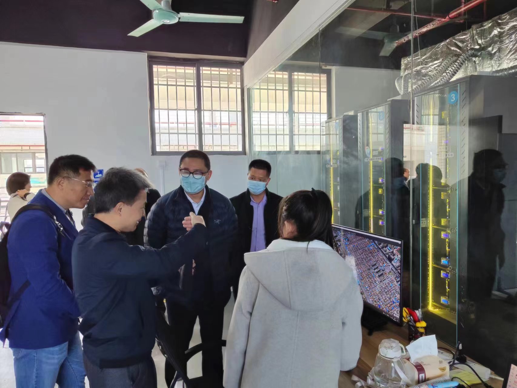 首先,速云中对本次到访的专家和嘉宾表示热烈的欢迎,随后带领胡晓光等人参观测绘地理信息实训中心,对本次竞赛的场地和竞赛设备进行了全面的讲解。