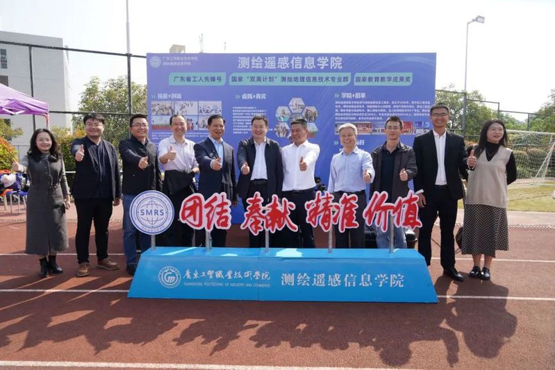 广东省教育厅党组成员、副厅长程大欣,学校党委书记何汉武等嘉宾与测绘遥感信息学院教职工合影留念