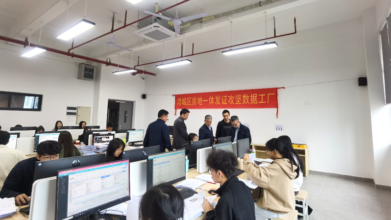 目前,测绘学院已完成工作场所及网络环境部署,实现120名作业人员培训上岗。作业人员分为20个组,每组设组长,由专任老师按照企业管理模式统一管理。城乡院派出5名技术人员驻场进行质量管理及提供技术指导,数据日处理量已达到1000宗以上。