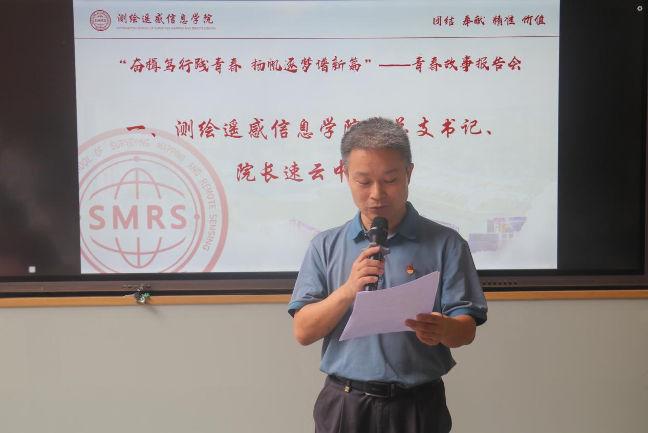 6月7日上午,由测绘遥感信息学院学生第一党支部承办的“奋楫笃行践青春 扬帆逐梦谱新篇”——青春故事报告会在测绘遥感信息学院3楼思政空间顺利举行,吸引了测绘学院40余名学生党员、入党积极分子参加。学校党委书记何汉武,学校党委委员、校长办公室主任吴浩,测绘遥感信息学院党总支书记、院长速云中,测绘遥感信息学院党总支副书记李元等主要领导出席了本次活动。