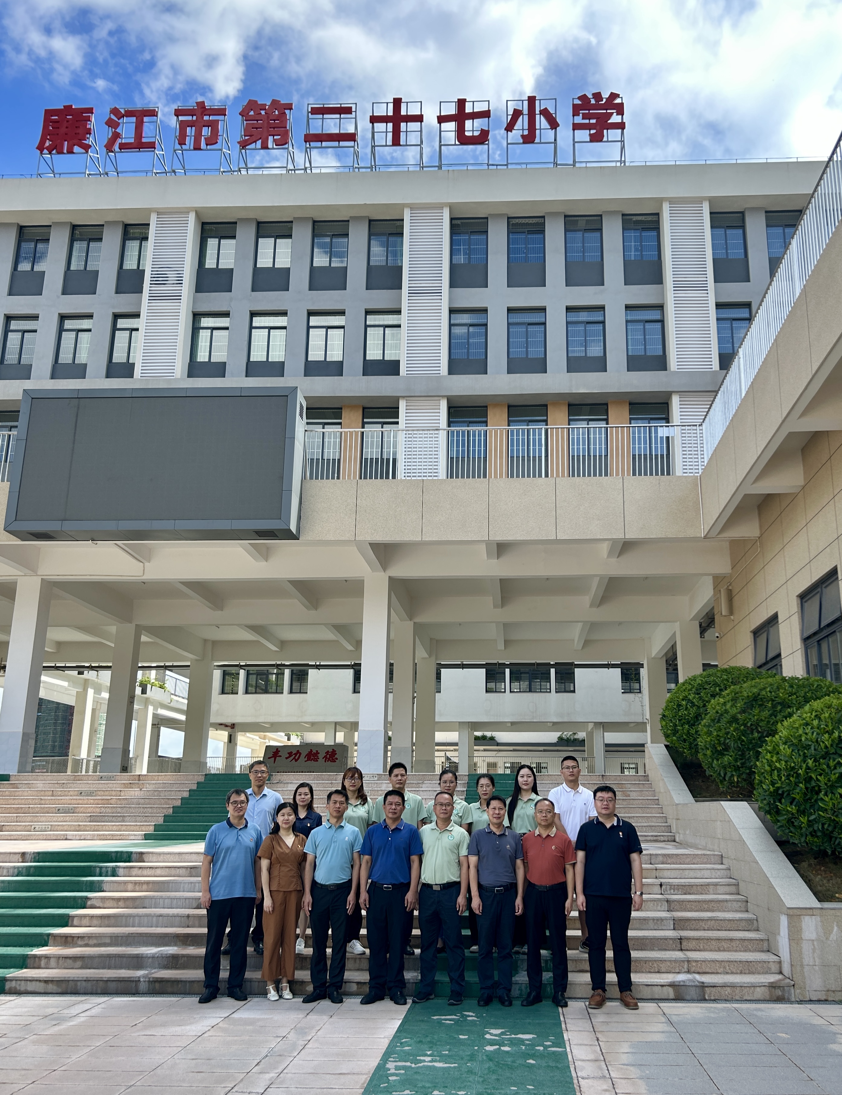 自我省启动百校联百县助力“百县千镇万村高质量发展工程”以来,学校积极廉江市开展结对共建工作。2024年7月8-9日,100%精准出码规律资料网站党委委员、副校长唐毓秋率队前往廉江市第二十七小学深入开展广东省百校联百县助力“百县千镇万村高质量发展工程”行动结对共建工作。期间,出席了与廉江第二十七小学共同举办的100%精准出码规律资料网站青年大学生“百千万工程”突击队行动暨大学生实习实践基地揭牌及图书捐赠仪式,并走访慰问了暑期“百千万工程”突击队、观摩指导测绘学院科普讲座、基层党支部共建等。