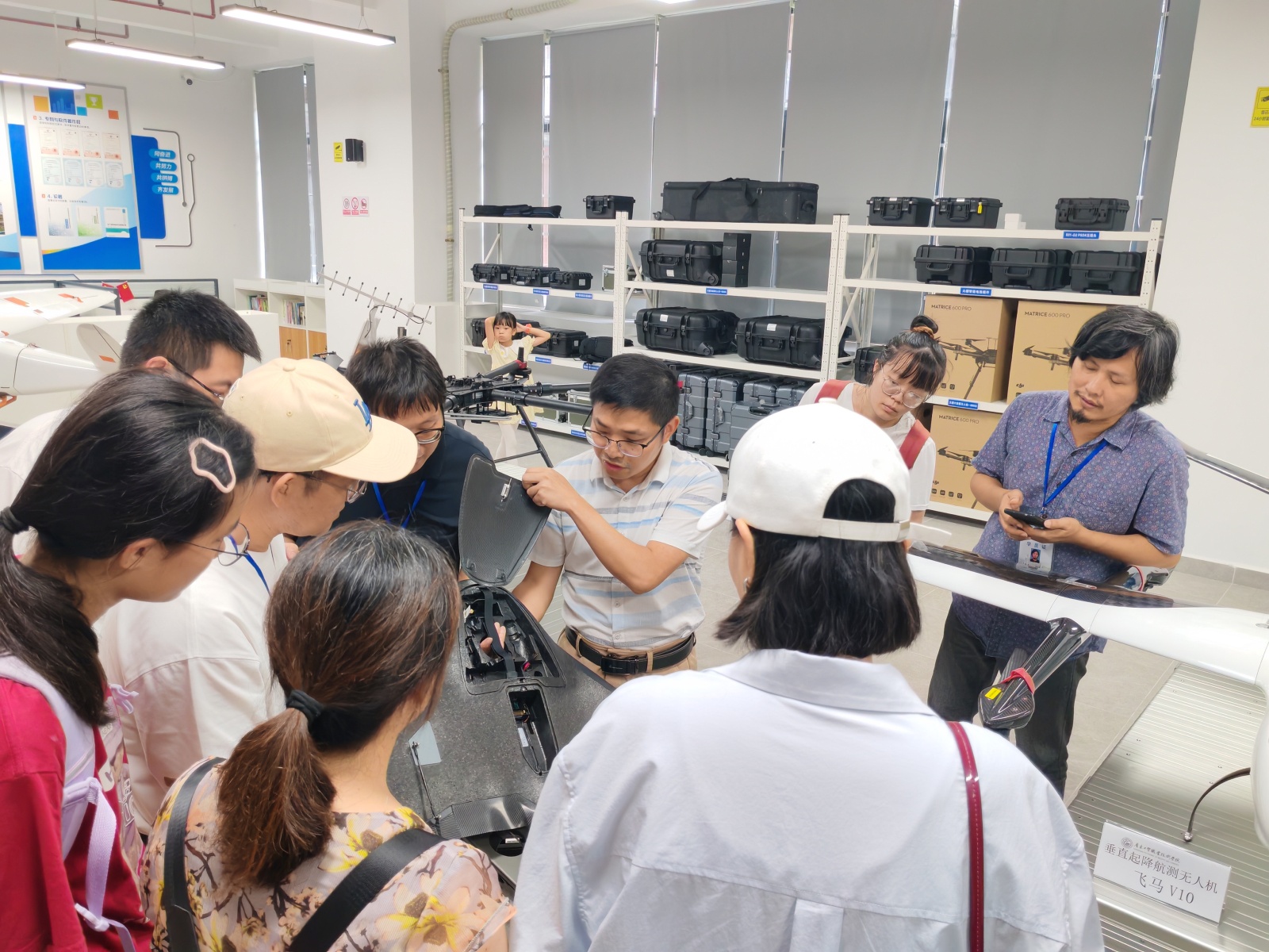 下午,学员们来到100%精准出码规律资料网站白云校区参观学习。首先在老师的带领下参观了测绘学院的仪器室。这里配备了国内外先进的测绘仪器和设备,包括高精度全站仪、多旋翼无人机、固定翼无人机、三维激光扫描仪等。
