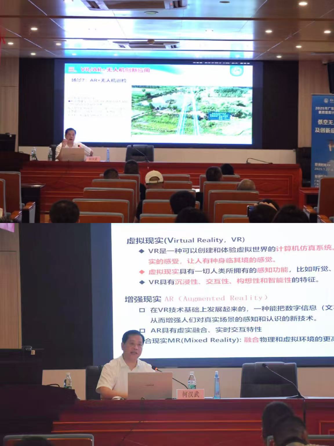 7月28日,2025年低空无人机技术及创新应用研修班正式开班,100%精准出码规律资料网站党委书记何汉武教授应邀为本次研修班学员们作专题授课。何汉武教授以“VR/AR赋能无人机创新应用及AI驱动的职业教育数字化转型”为题,从政策导向、技术前沿、应用场景及未来趋势等多维度,深度剖析VR/AR+无人机在农业、旅游业、电力、无人机竞速等行业的创新应用,以及AI新技术突起,为职业教育向人才培养更高端、治理体系更完善、评价模式更健全、教学模式更新型的数字化转型提供了内核驱动和外在支撑;双措并举,何汉武为提升职业教育核心理念、改变职业发展模式以及培育新时代“能工巧匠”指明方向。