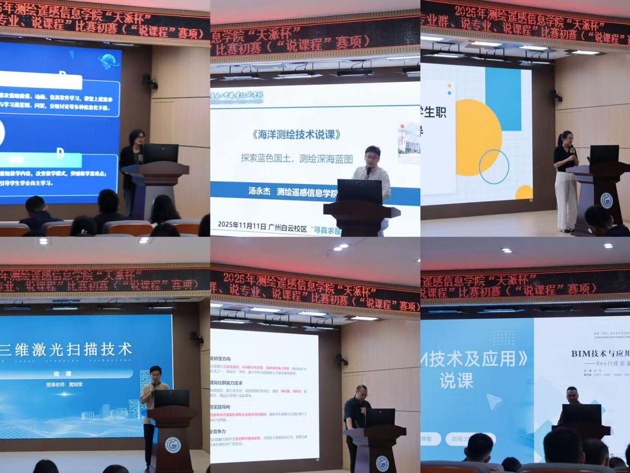 为深化课程改革,提升教师课程建设与教学实施能力,2025年11月11日,测绘遥感信息学院在白云校区图书馆2-508成功举办“天派杯”“说专业群、说专业、说课程”比赛初赛(“说课程”赛项)。测绘遥感信息学院党总支书记李元、院长高照忠、党总支副书记陈君浩、副院长黄铁兰与建设工程与管理系系主任邓祎文为本次比赛评委,特邀企业嘉宾广州天派测绘技术有限公司内业主管林敏仪莅临指导,学院全体教师共同观摩了这场高水平的教学展示活动。