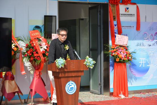 学校党委委员,副校长陈珊兴代表学校对广州市壹鸣云科技有限公司盛大开业表示诚挚的祝贺,鼓励更多的大学生一起加入到新时代的创新创业行列当中来,充分解放思想,用于探索新事物,多途径帮助实现广大学子充分就业。